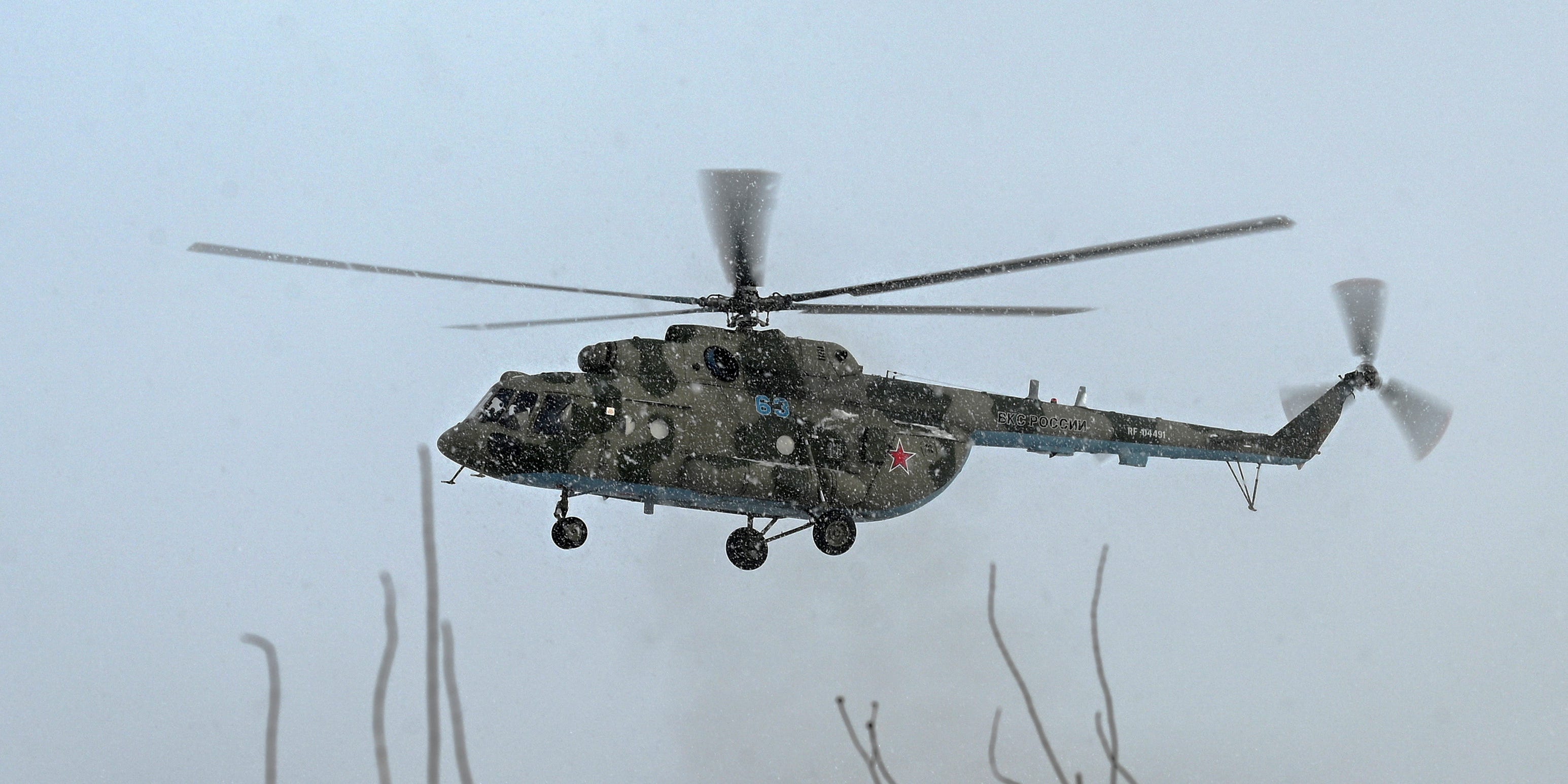 A Russian Mi-8 military helicopter seen in the Rostov region of Russia in January 2022.