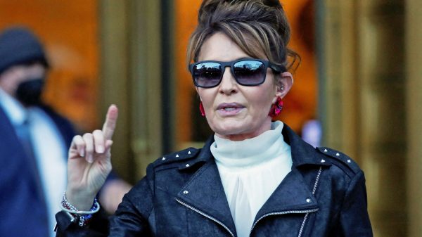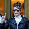 Sarah Palin, 2008 Republican vice presidential candidate and former Alaska governor, speaks to the media as she exits the court during her defamation lawsuit...