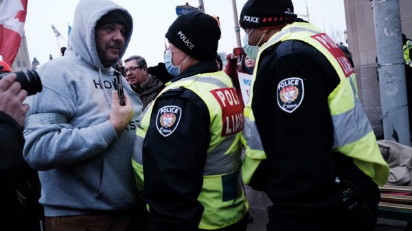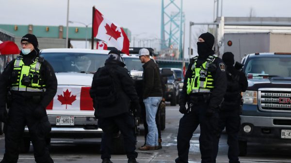 WINDSOR, Ontario — A tense standoff at a U.S.-Canadian border bridge eased somewhat Saturday after Canadian police persuaded demonstrators to move the trucks they...