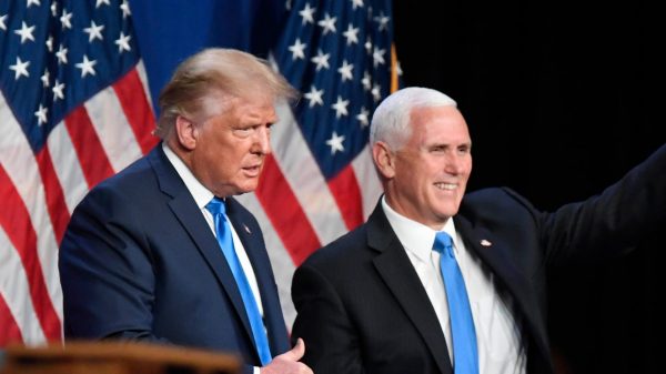 Then-President Donald Trump and his vice president, Mike Pence. David T. Foster III-Pool/Getty Images Trump on Sunday repeated the untrue claim that Pence could...