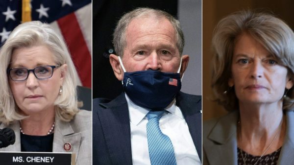From left to right: Rep. Liz Cheney of Wyoming, former President George W. Bush, and Sen. Lisa Murkowski of Alaska. Anna Moneymaker/Getty Images and...