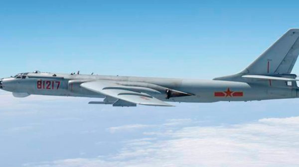A Chinese H-6 bomber flies over the Miyako Strait between Japan’s Okinawa and Miyako islands. REUTERS/Joint Staff Office of the Defense Ministry of Japan/Handout...
