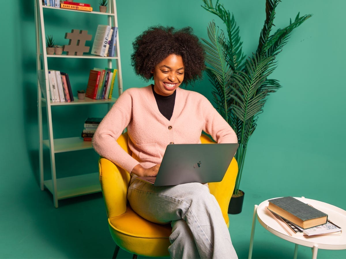 Search Engine Optimization (SEO) SpecializationPerson smiling looking at a laptop while sitting outside