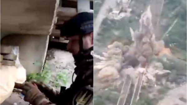 Members of the Ukrainian National Guard place explosives and blow up a bridge. Ukrainian National Guard A video shared by Ukraine’s National Guard shows...