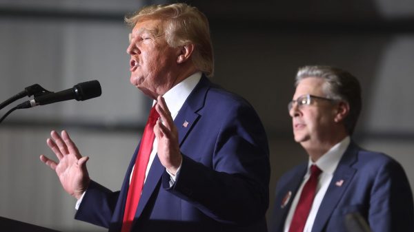 Former President Donald Trump endorses Matthew DePerno, who is running for the Michigan Republican party’s nomination for state attorney general, during a rally on...