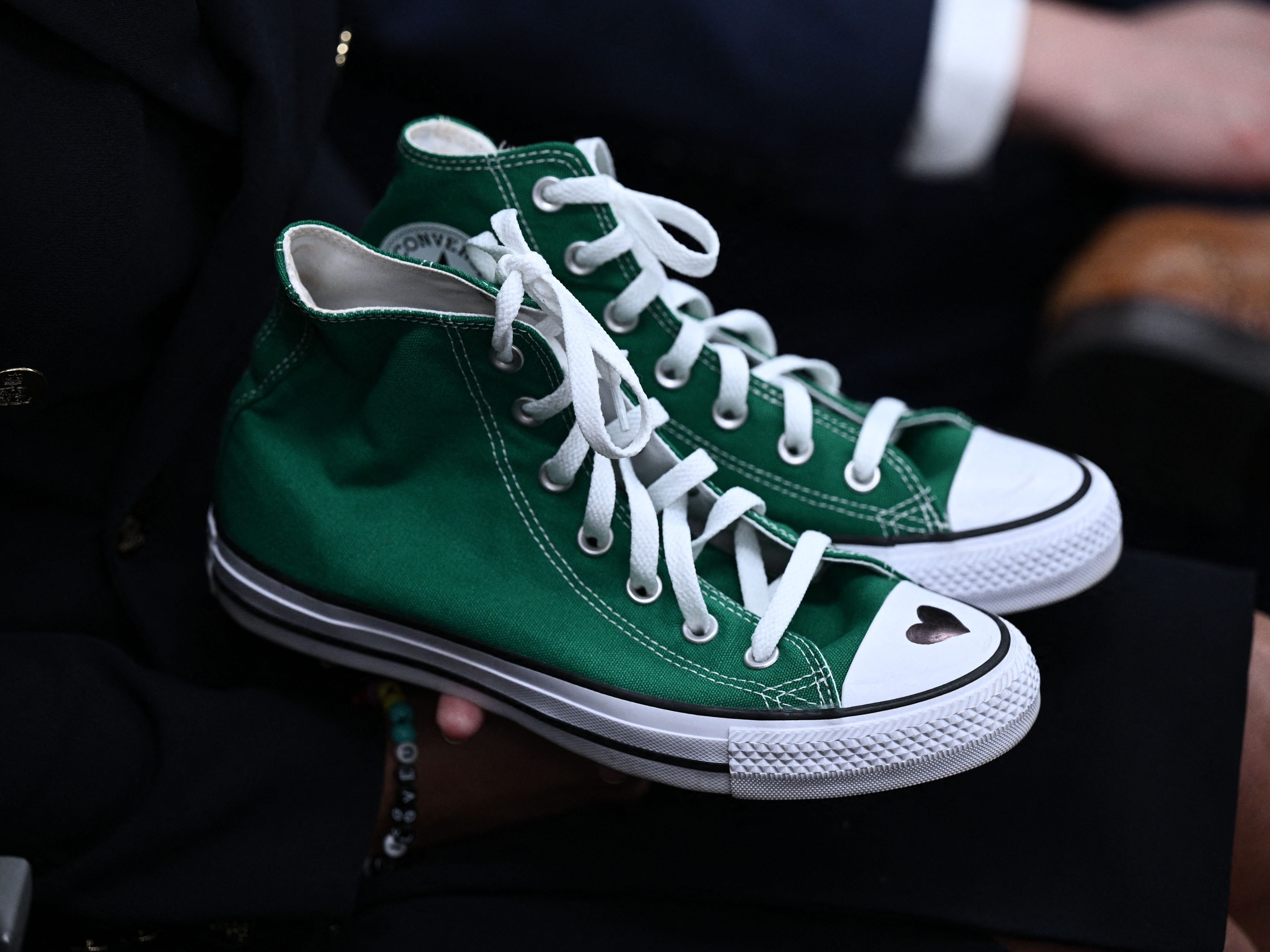 The pair of green Converse high-tops worn by nine-year-old Maite Rodriguez when she was killed in the Uvalde school shooting.
