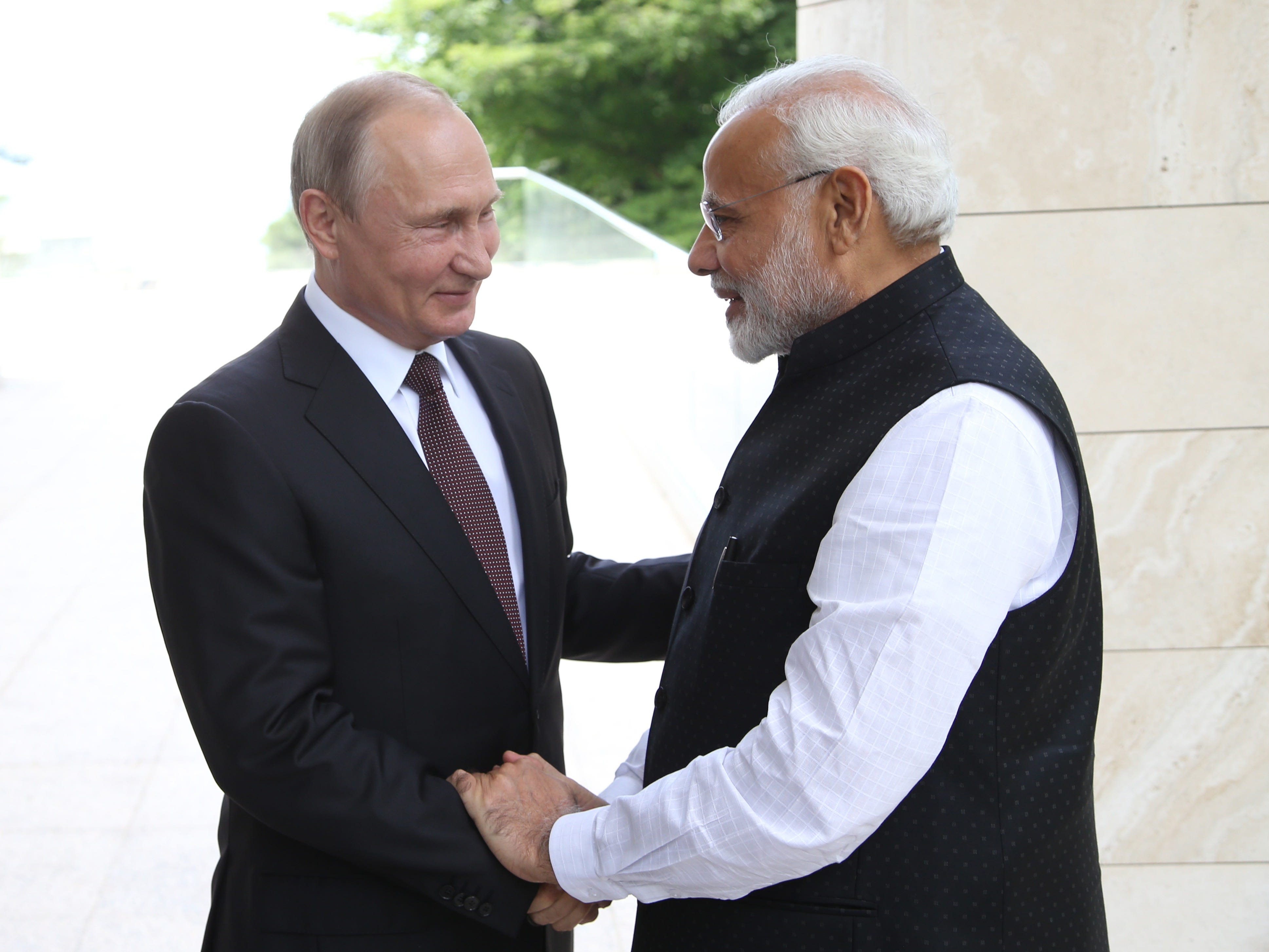 Indian Prime Minister Narendra Modi meeting Russian President Vladimir Putin in May, 2018.